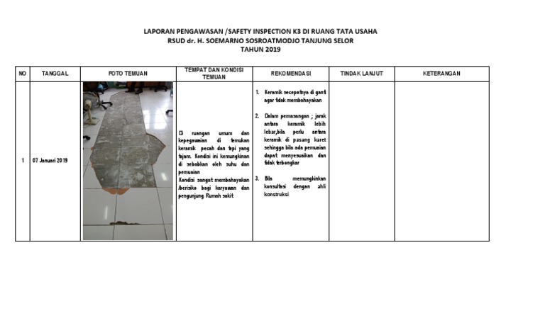 Laporan Inspeksi SAFETY PATROL TU Sumber : www.scribd.com